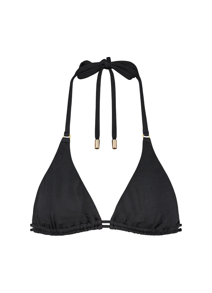 Artikelnummer 370119-969 Brandcode 70 Kleur Zwart Maat 36B (70B),36D (70D),38B (75B),38D (75D),40B (80B),40D (80D),42B (85B),42D (85D) Materiaal 94% Polyamide, 6% Elastaan Seizoen SS23 Soort top Halter,Lichte padding,Padding,Soft cup (niet voorgevormd),Triangel