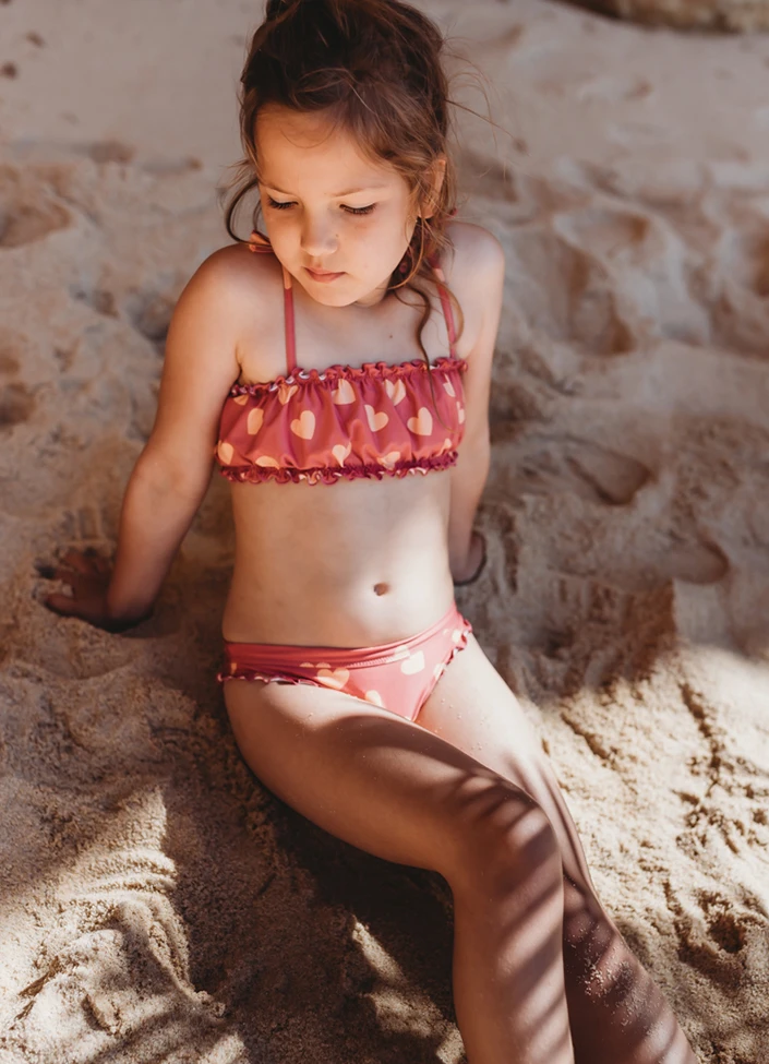 - Meisjes bikiniset met puffy bikinitop en bikinibroekje met ruches rondom te zoom