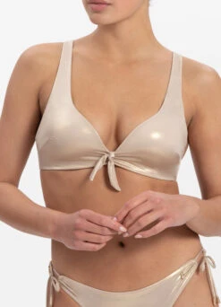 BEACHLIFE Gold Champagne Puffy Bikinitop
